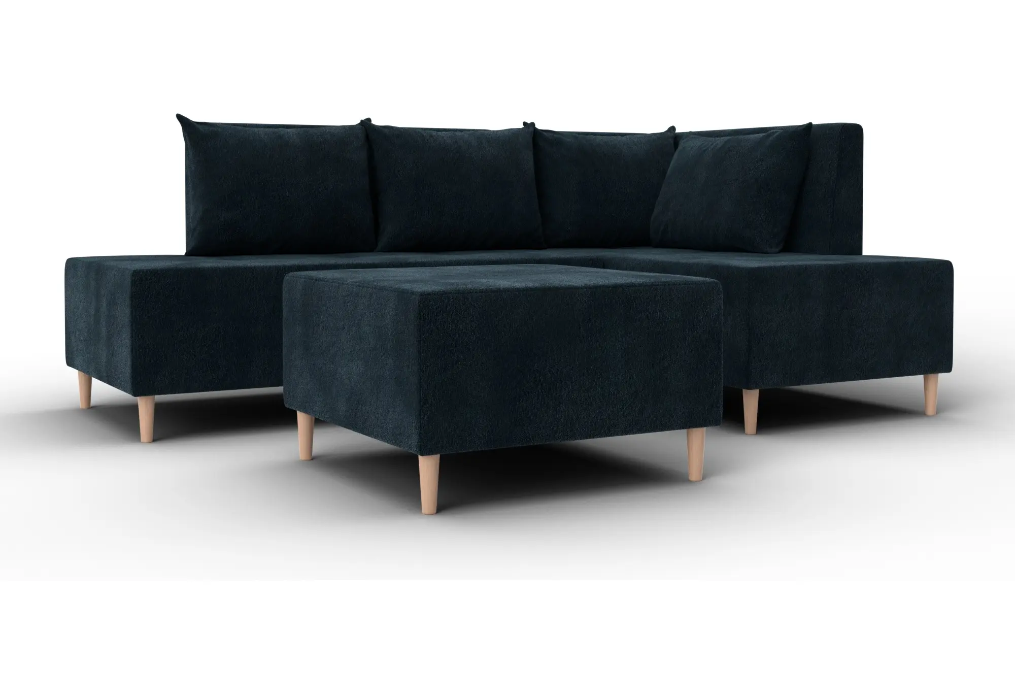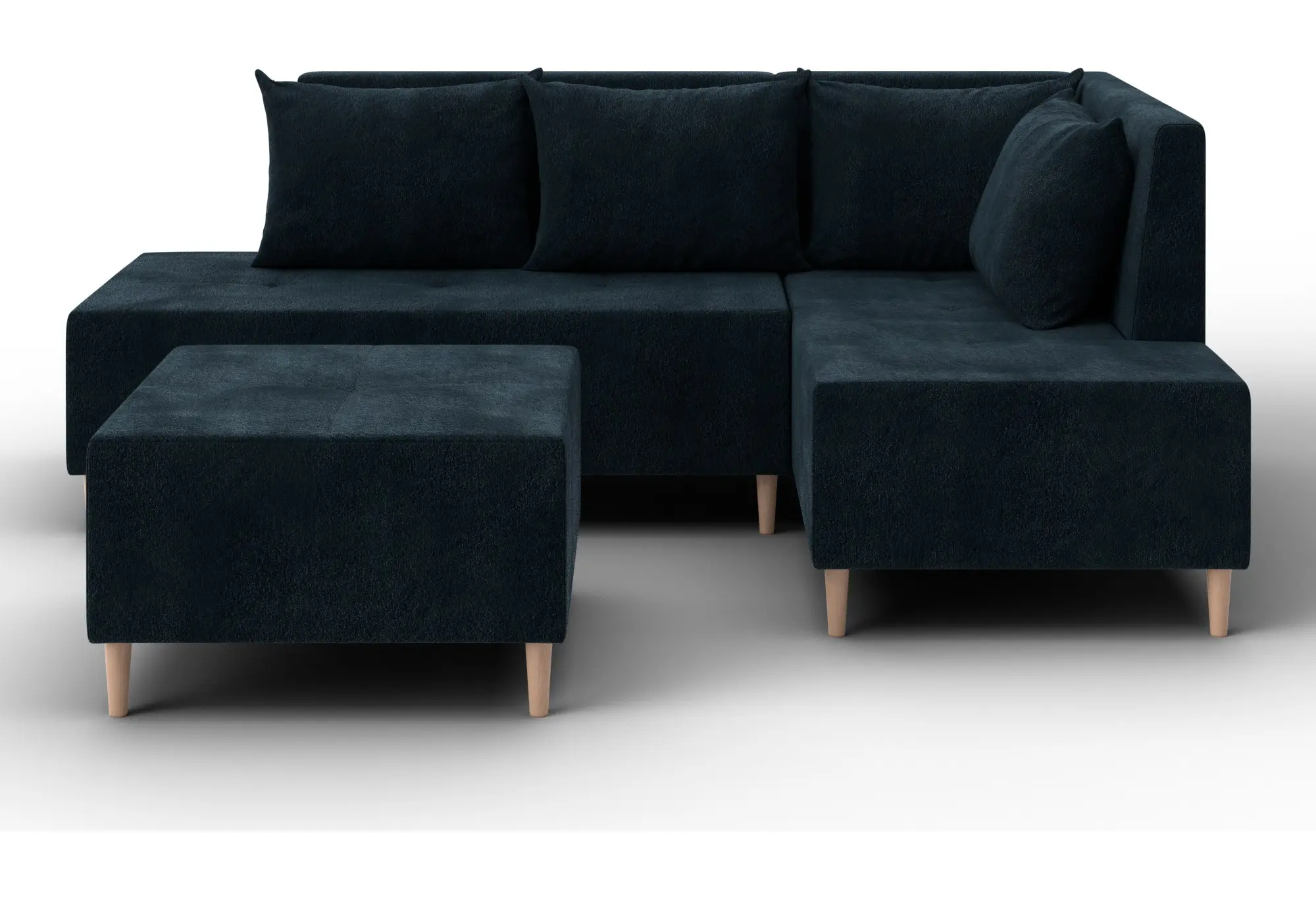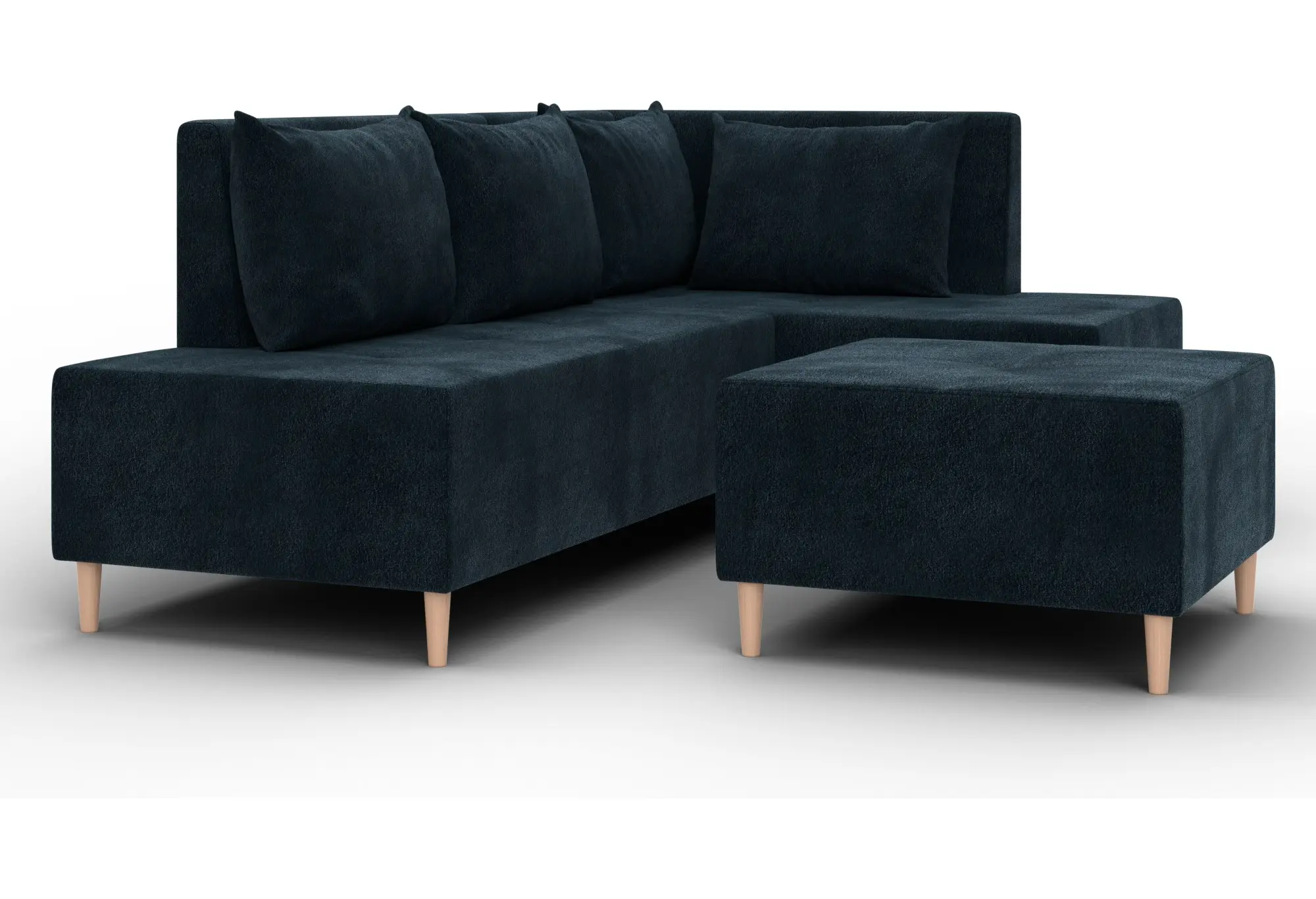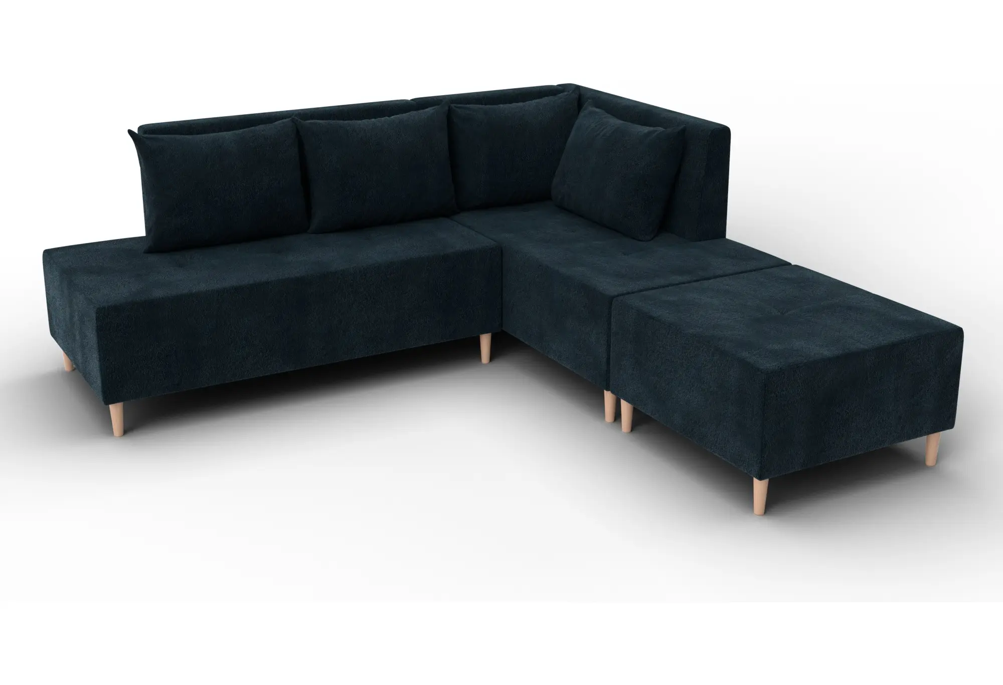 Модульный диван с пуфом Лига-126 – это современное решение для тех, кто ценит гибкость и функциональность. Модель состоит из двух основных модулей и отдельного пуфа. Вы можете собрать угловой диван, удобную зону отдыха или приставить пуф к дивану, чтобы удлинить спальное место. Прочный каркас из ДСП, ЛДСП, фанеры и бруса гарантирует надёжность и долгий срок службы. Мягкие съёмные подушки обеспечивают комфорт, а пуф (75×75×42 см) можно использовать как дополнительное сиденье, подставку для ног или небольшой столик. Высокие деревянные ножки придают дивану элегантный вид и облегчают уборку. Спальное место – 60×197 см. Широкий выбор расцветок.