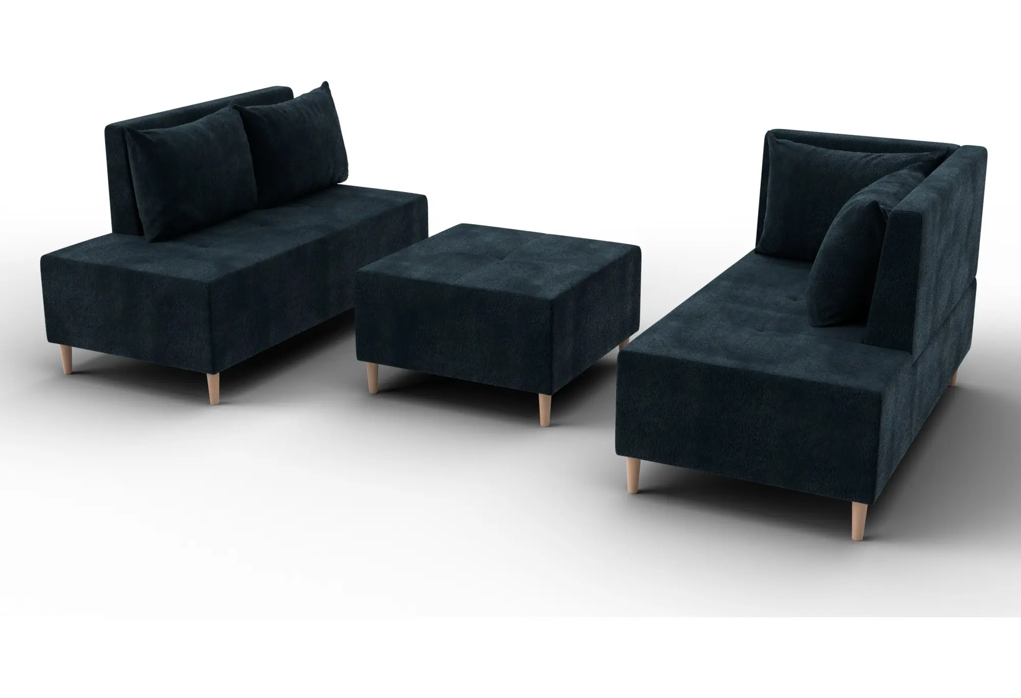 - Два основных модуля + пуф – можно собирать в разных вариациях.