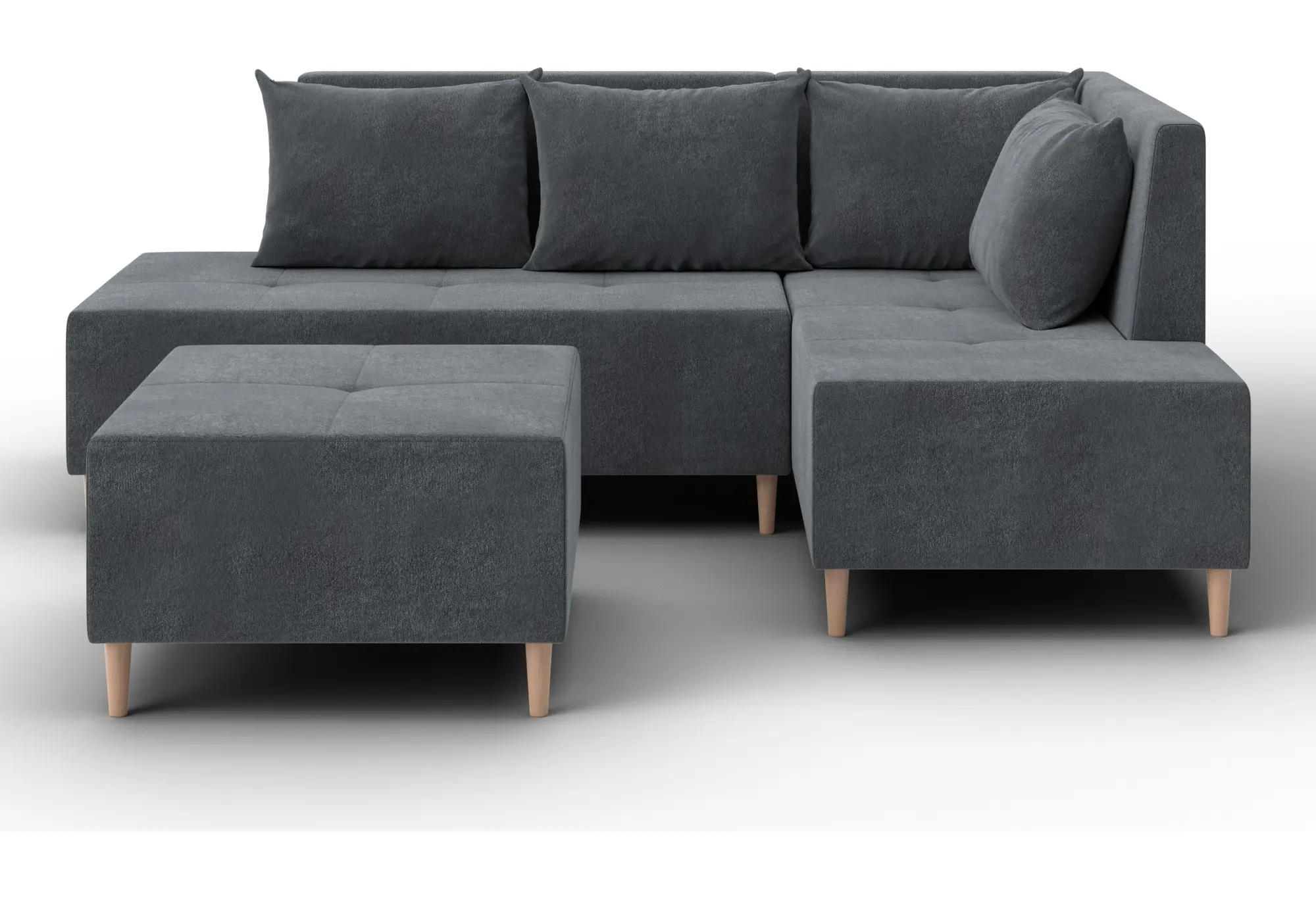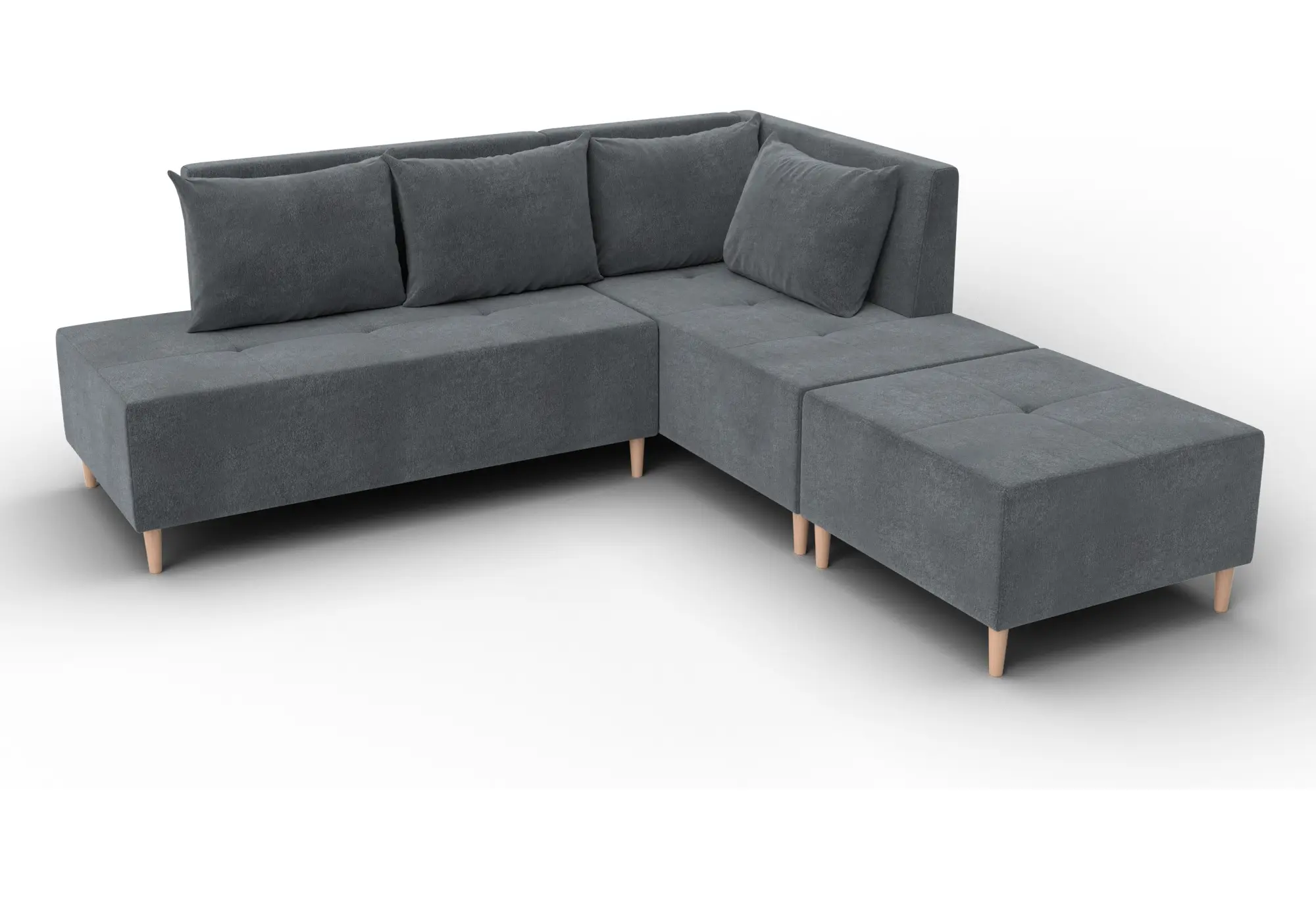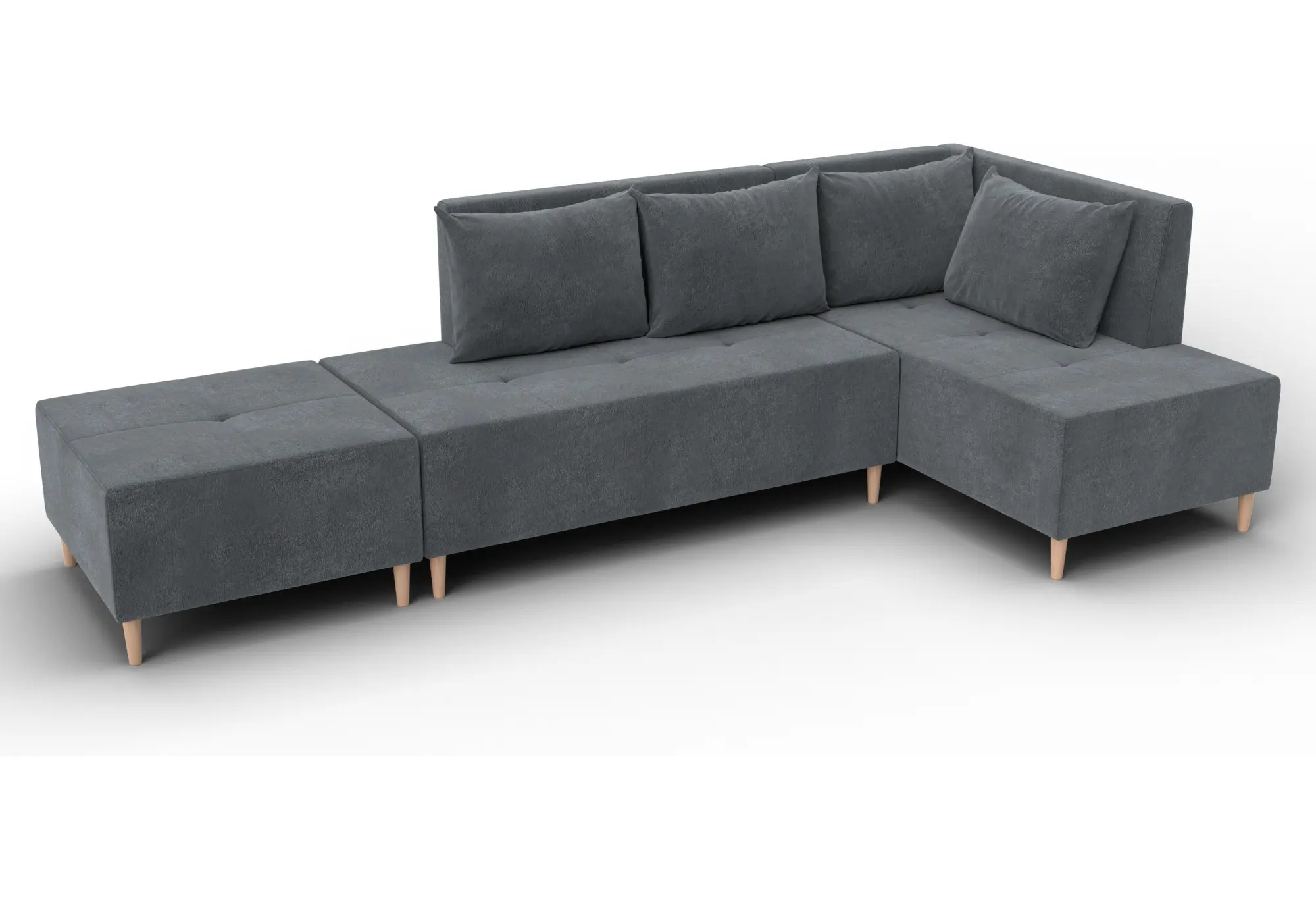 Модульный диван с пуфом Лига-126 – это современное решение для тех, кто ценит гибкость и функциональность. Модель состоит из двух основных модулей и отдельного пуфа. Вы можете собрать угловой диван, удобную зону отдыха или приставить пуф к дивану, чтобы удлинить спальное место. Прочный каркас из ДСП, ЛДСП, фанеры и бруса гарантирует надёжность и долгий срок службы. Мягкие съёмные подушки обеспечивают комфорт, а пуф (75×75×42 см) можно использовать как дополнительное сиденье, подставку для ног или небольшой столик. Высокие деревянные ножки придают дивану элегантный вид и облегчают уборку. Спальное место – 60×197 см. Широкий выбор расцветок.