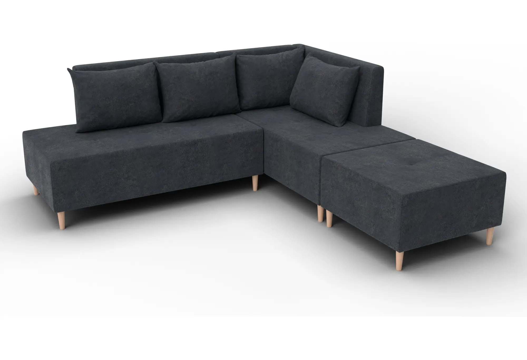 Модульный диван с пуфом Лига-126 – это современное решение для тех, кто ценит гибкость и функциональность. Модель состоит из двух основных модулей и отдельного пуфа. Вы можете собрать угловой диван, удобную зону отдыха или приставить пуф к дивану, чтобы удлинить спальное место. Прочный каркас из ДСП, ЛДСП, фанеры и бруса гарантирует надёжность и долгий срок службы. Мягкие съёмные подушки обеспечивают комфорт, а пуф (75×75×42 см) можно использовать как дополнительное сиденье, подставку для ног или небольшой столик. Высокие деревянные ножки придают дивану элегантный вид и облегчают уборку. Спальное место – 60×197 см. Широкий выбор расцветок.