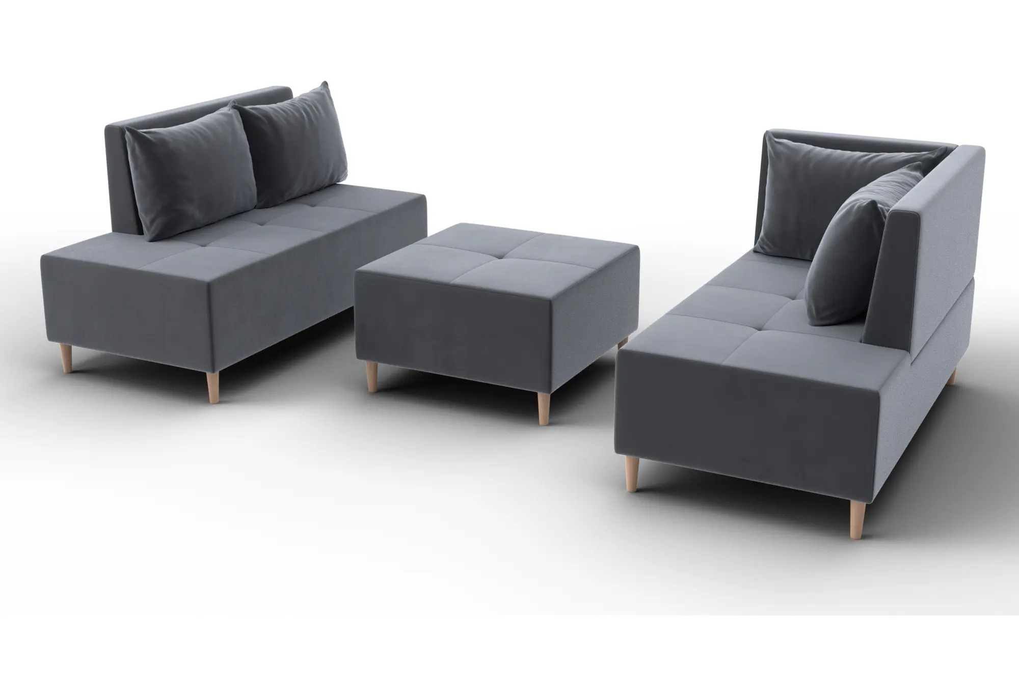 - Два основных модуля + пуф – можно собирать в разных вариациях.