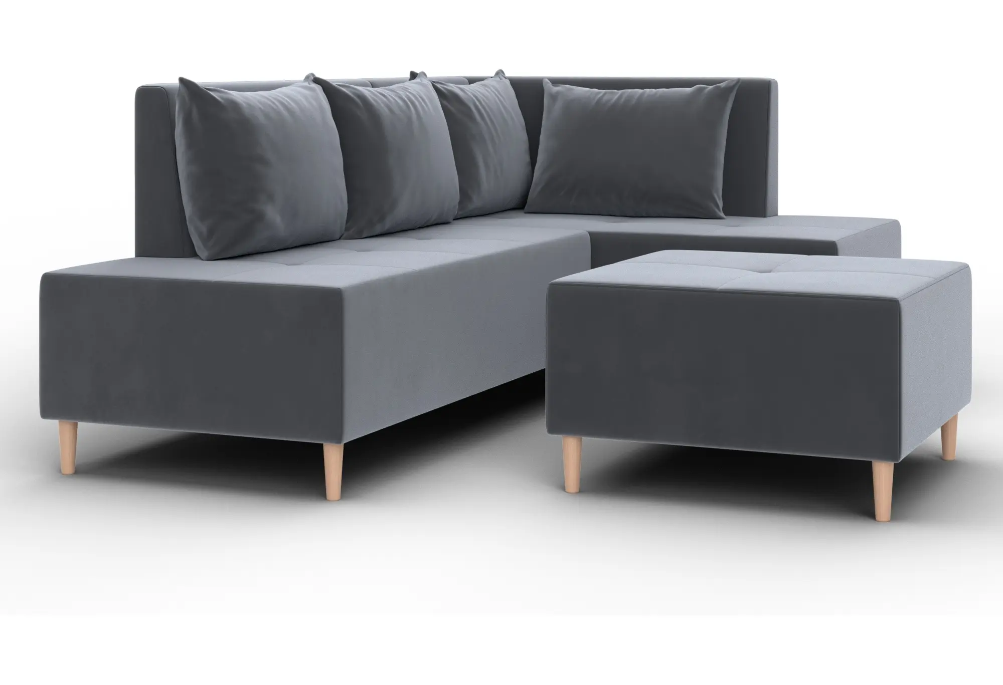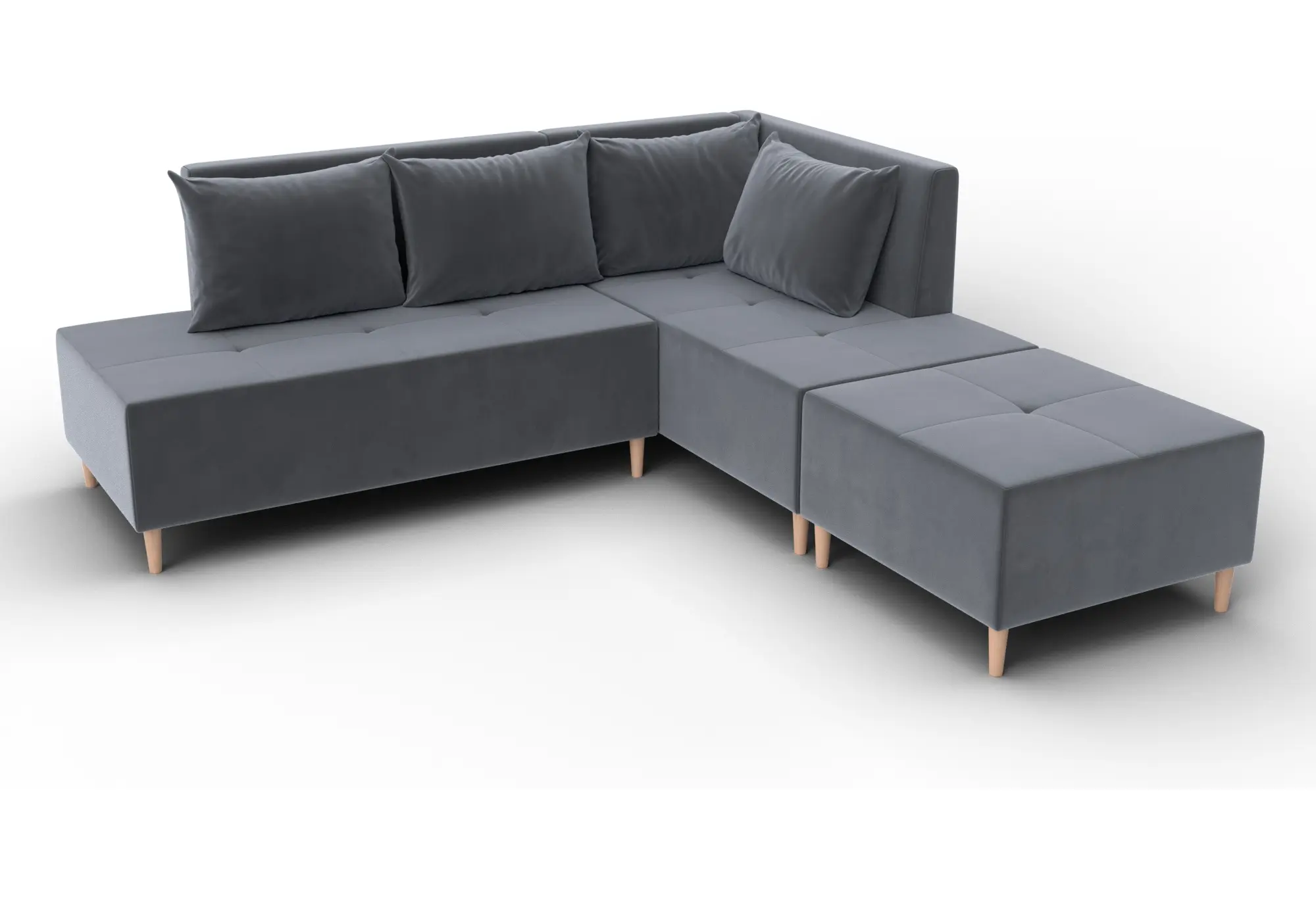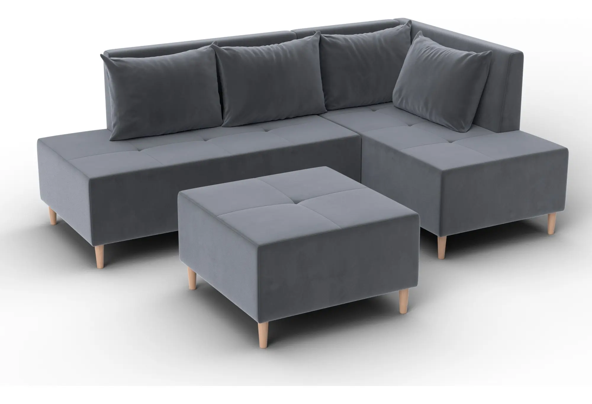 Диван угловой модульный с пуфом Лига-126 угол правый SEVEN 17 серый (Велюр)