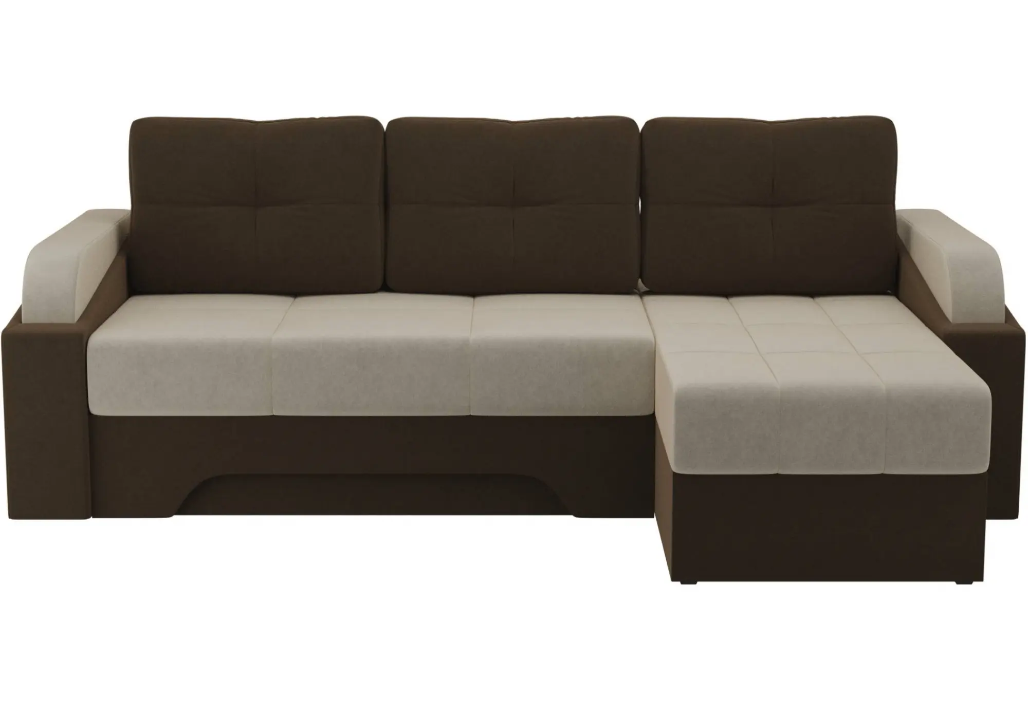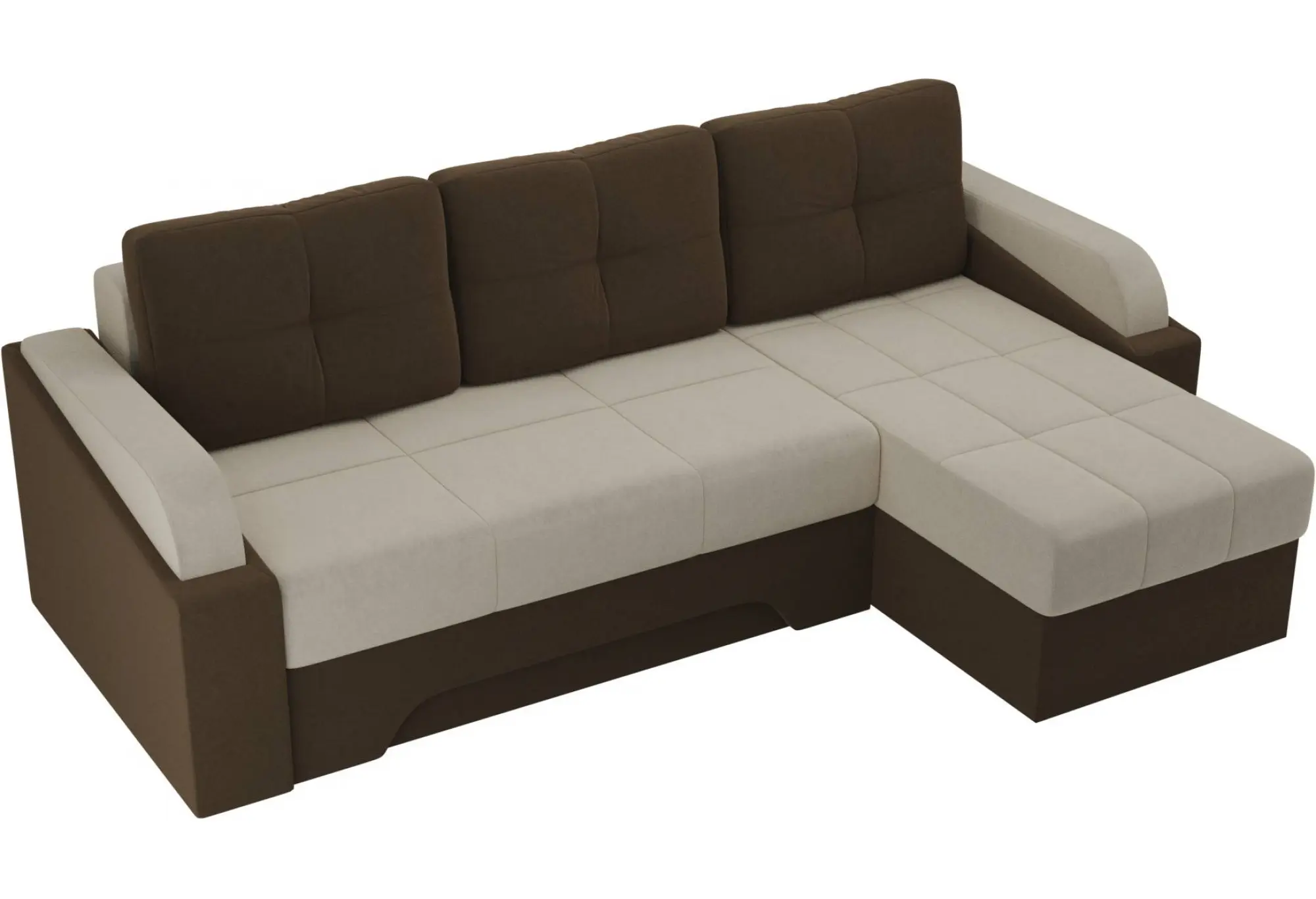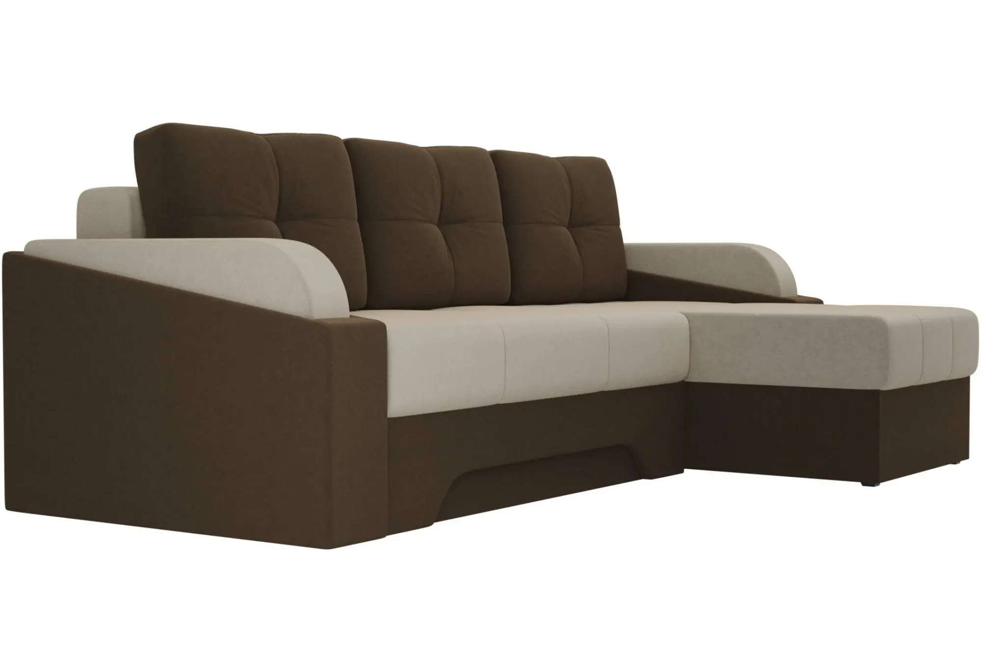 Угловой диван Панда бежевый/коричневый (Микровельвет)