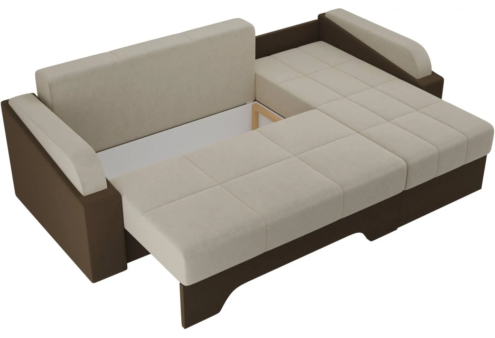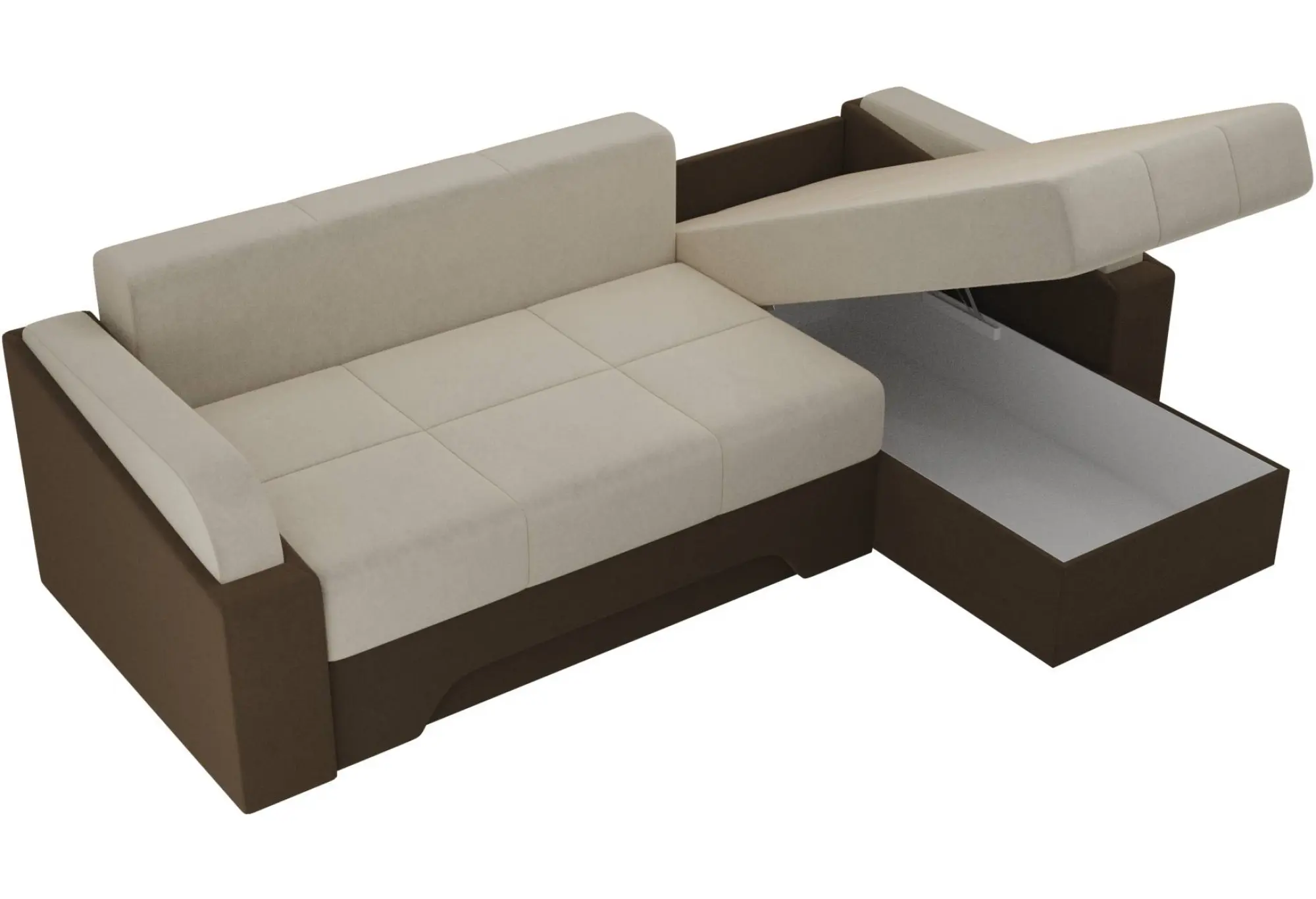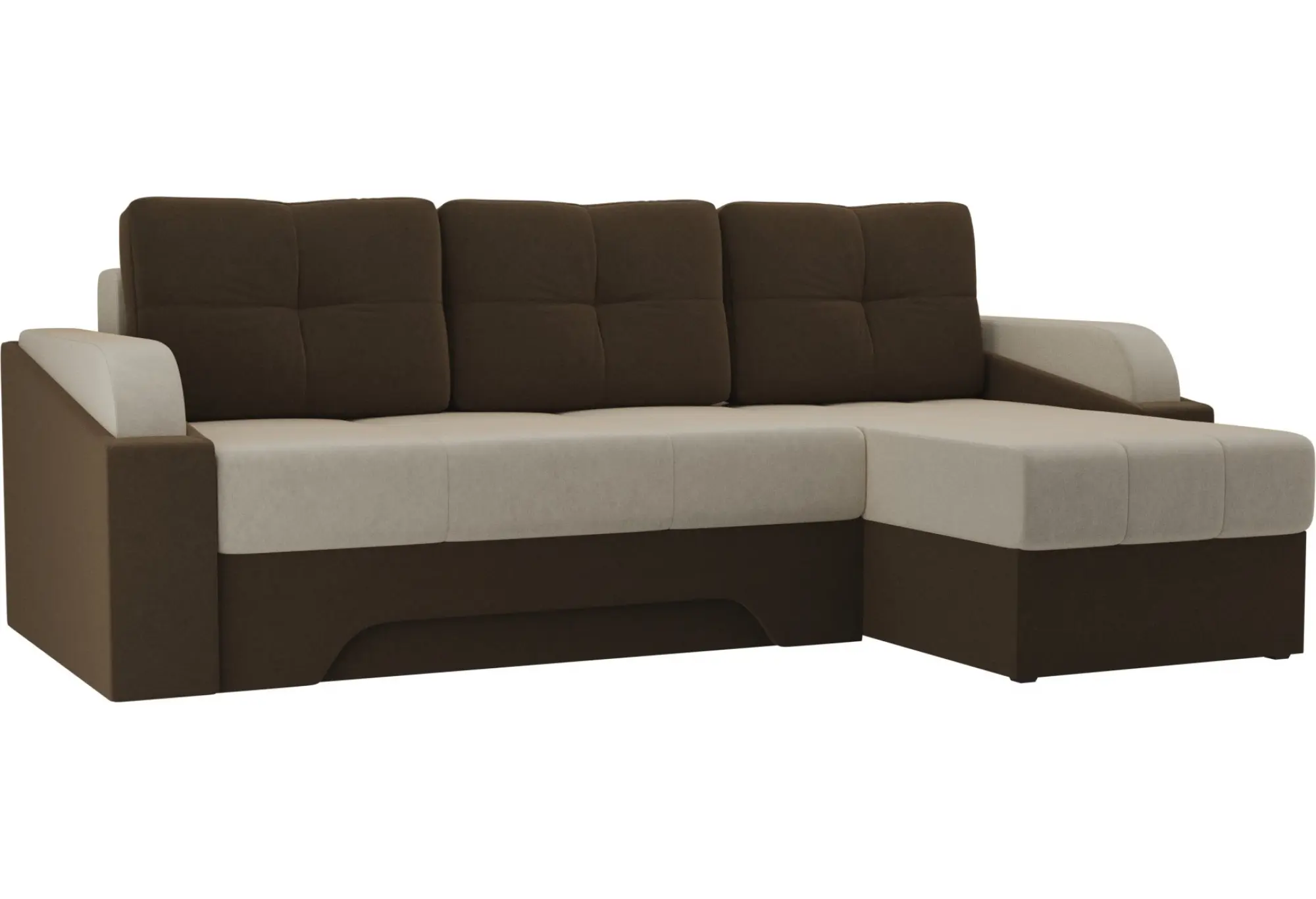Угловой диван Панда бежевый/коричневый (Микровельвет)