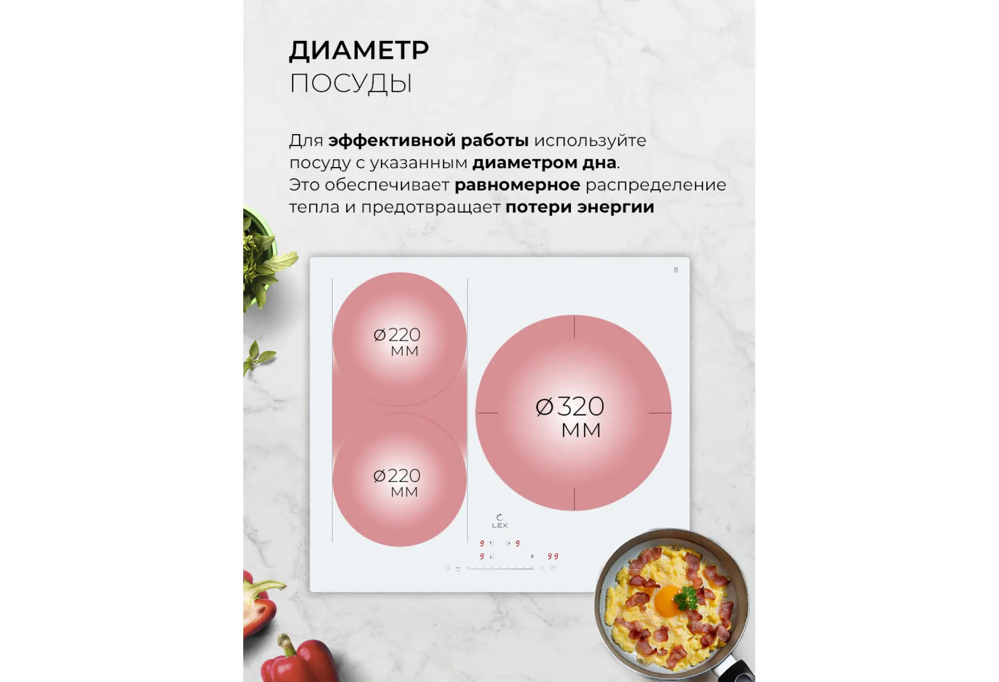 Электрическая индукционная варочная панель LEX EVI 631A WH имеет три конфорки и сенсорное управление. Ширина для встраивания 600 мм. Современный индукционный нагревательный элемент демонстрирует высокую скорость нагрева, существенно экономит электроэнергию и сокращает время приготовления блюд. Модель снабжена кнопкой блокировки панели, индикатором остаточного тепла, защитой от перегрева, распознаванием наличия посуды. Панель имеет FlexZone расширенной конфигурации, которую удобно использовать для посуды нестандартных размера и формы. Наличие функции Boost позволяет ускорить процессы приготовления. Функция StopnGo дает возможность при необходимости одним нажатием приостановить и продолжить работу с сохранением температурных режимов и таймера.