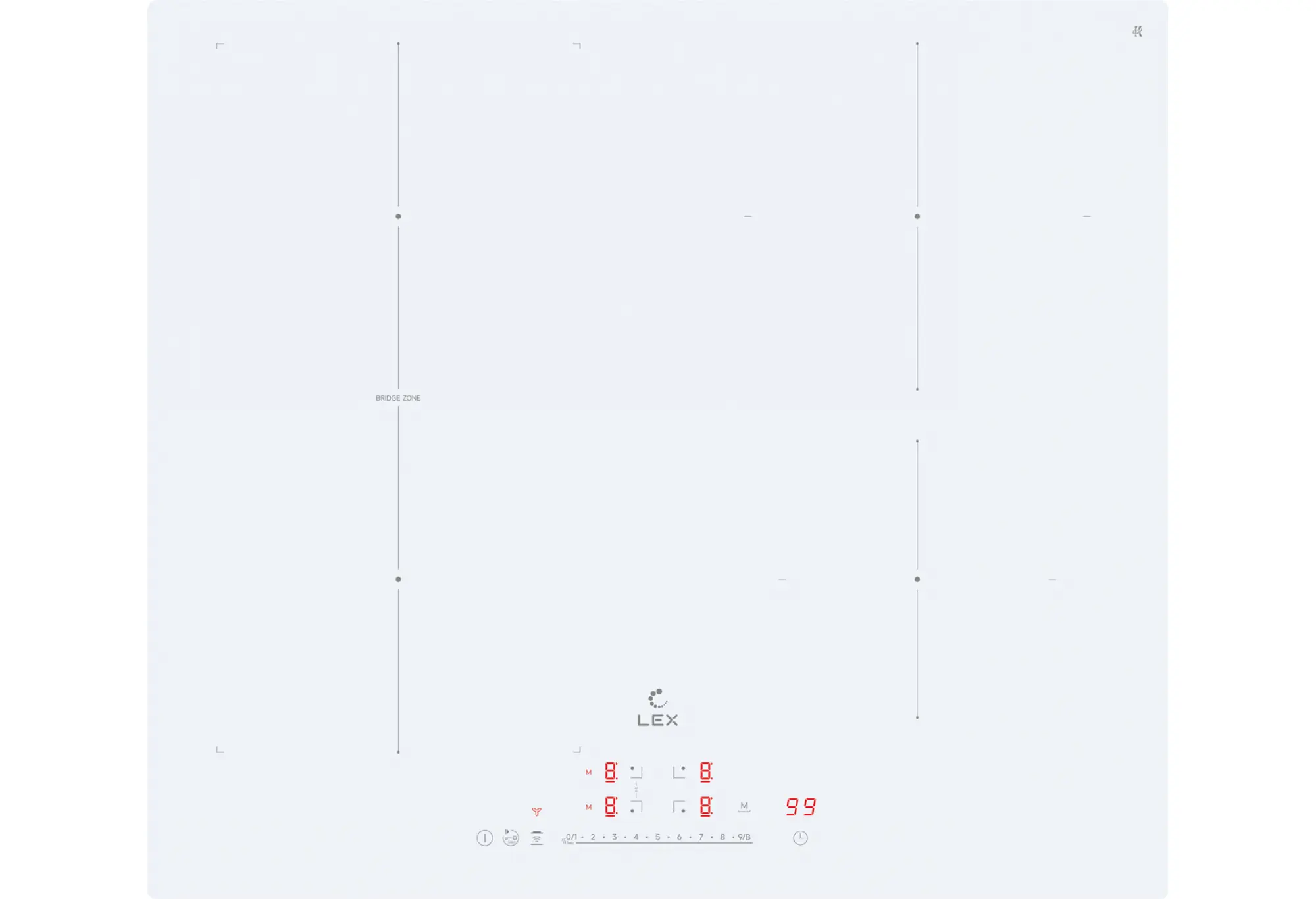 Электрическая индукционная варочная панель LEX EVI 641A I WH имеет четыре конфорки и сенсорное управление. Ширина для встраивания 600 мм. Инверторный индукционный нагревательный элемент демонстрирует высокую скорость нагрева, существенно экономит электроэнергию и сокращает время приготовления блюд. Панель имеет FlexZone расширенной конфигурации, которую удобно использовать для посуды нестандартных размера и формы. Модель снабжена кнопкой блокировки панели, индикатором остаточного тепла, защитой от перегрева, распознаванием наличия посуды. Наличие функции Boost позволяет ускорить процессы приготовления. Функция StopnGo дает возможность при необходимости одним нажатием приостановить и продолжить работу с сохранением температурных режимов и таймера. Несмотря на общее мнение, что поверхность в индукционной плите не нагревается, это не совсем так. Она нагревается от самой посуды и нужно быть аккуратными. Сразу после снятия кастрюли или сковороды, поверхность горячая, хотя и практически мгновенно остывает. И уже через несколько секунд её можно трогать рукой.
