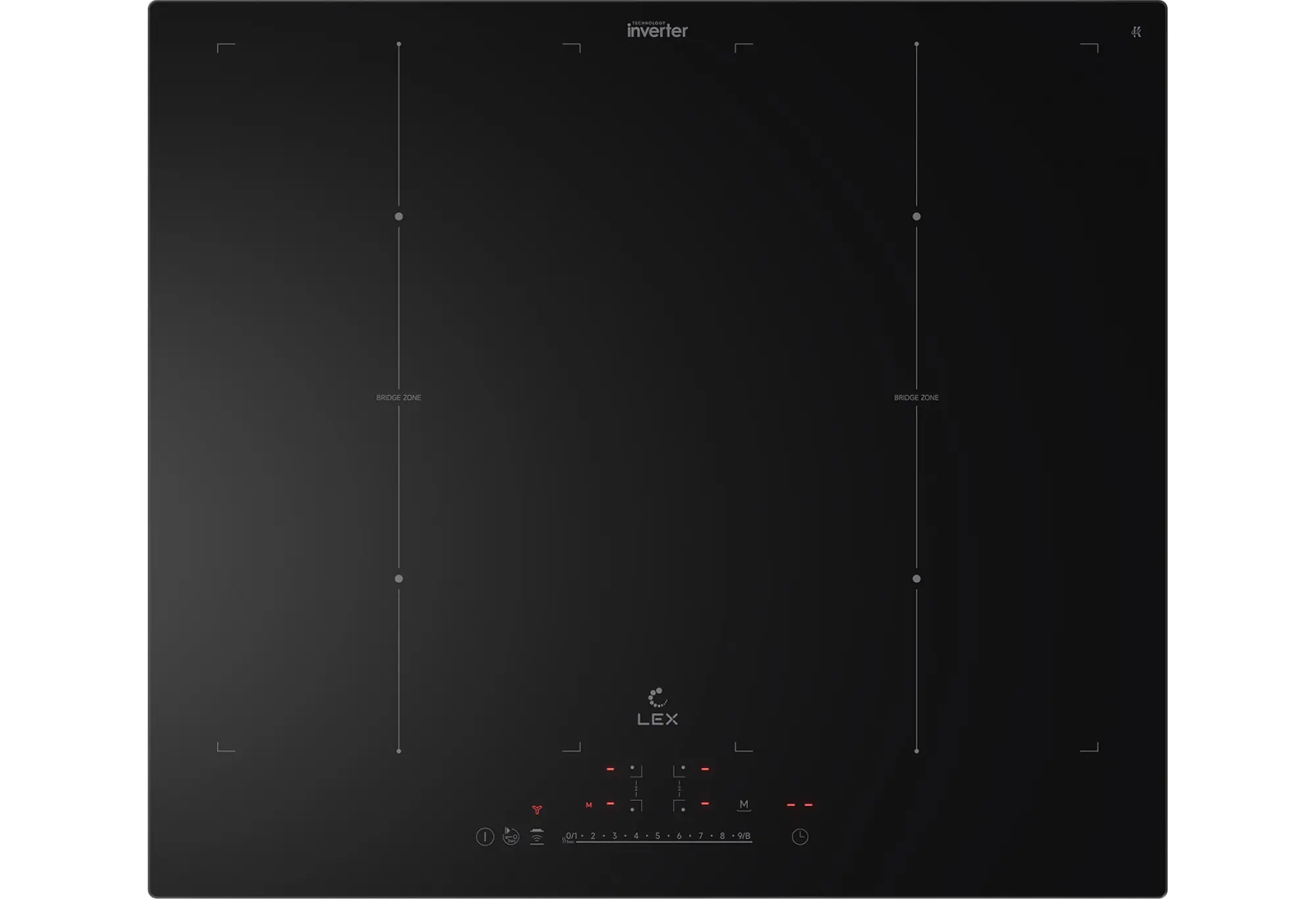 Электрическая индукционная варочная панель LEX EVI 641B I BL имеет четыре конфорки и сенсорное управление. Ширина для встраивания 600 мм. Инверторный индукционный нагревательный элемент демонстрирует высокую скорость нагрева, существенно экономит электроэнергию и сокращает время приготовления блюд. Панель имеет FlexZone расширенной конфигурации, которую удобно использовать для посуды нестандартных размера и формы. Модель снабжена кнопкой блокировки панели, индикатором остаточного тепла, защитой от перегрева, распознаванием наличия посуды. Наличие функции Boost позволяет ускорить процессы приготовления. Функция StopnGo дает возможность при необходимости одним нажатием приостановить и продолжить работу с сохранением температурных режимов и таймера. Несмотря на общее мнение, что поверхность в индукционной плите не нагревается, это не совсем так. Она нагревается от самой посуды и нужно быть аккуратными. Сразу после снятия кастрюли или сковороды, поверхность горячая, хотя и практически мгновенно остывает. И уже через несколько секунд её можно трогать рукой.