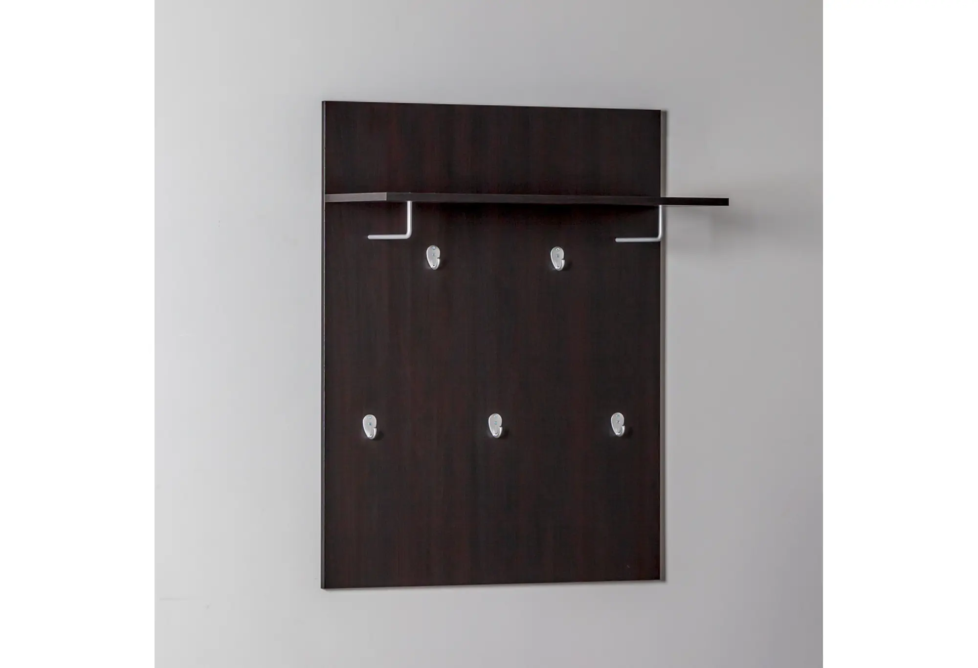 Тёмный оттенок дуб венге и лаконичная геометрия делают вешалку уместной в современном интерьере с нейтральной или контрастной отделкой. Конструкция рассчитана на настенный монтаж, что позволяет экономить полезную площадь пола и поддерживать визуальный порядок. Изделие подходит как для жилых, так и для общественных помещений, а заявленный гарантийный срок — 24 месяца для жилых и 18 месяцев для объектов общего пользования — подчёркивает надёжность изделия при повседневной эксплуатации.