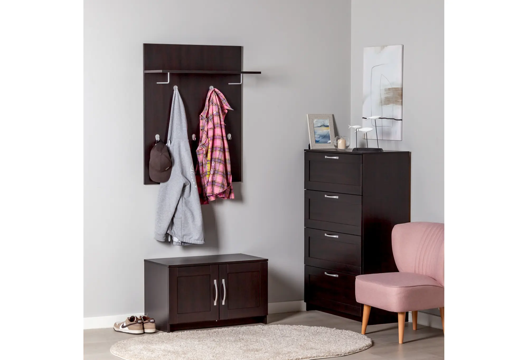 Преимущества:- Компактные размеры 782×316×1000 мм для небольших прихожих и коридоров