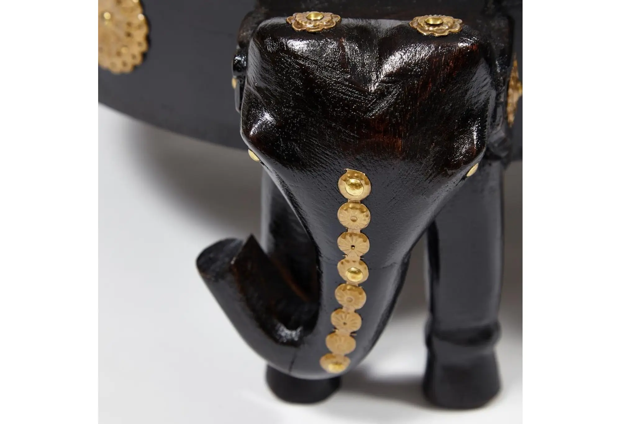 Уникальный столик Secret de Maison 3 SLONA, выполненный индийскими мастерами, добавит самобытной красоты и индивидуальности в ваш интерьер. Качественная ручная работа и традиции мастеров древнего Востока выделяют столик среди привычной мебели. Каркас из древесины манго, покрашенный в черный цвет, оригинальные ножки в виде слонов и изысканная столешница с отделкой под латунь и чеканкой ручной работы подчеркивают уникальность изделия, превращая его в произведение искусства. Компактные размеры, легкий вес и простота конструкции позволяют использовать столик, как по прямому назначению, так и в качестве дополнительной сервировочной поверхности. В небольшом выдвижном ящике можно хранить разные мелочи. Каркас изделия изготовлен из массива дерева манго, он практичен, надежен, прост в уходе и прослужит долгие годы, сохраняя свой первоначальный вид. Столик относится к коллекции ANTIQUE CLOCKS, поставляется в собранном виде.